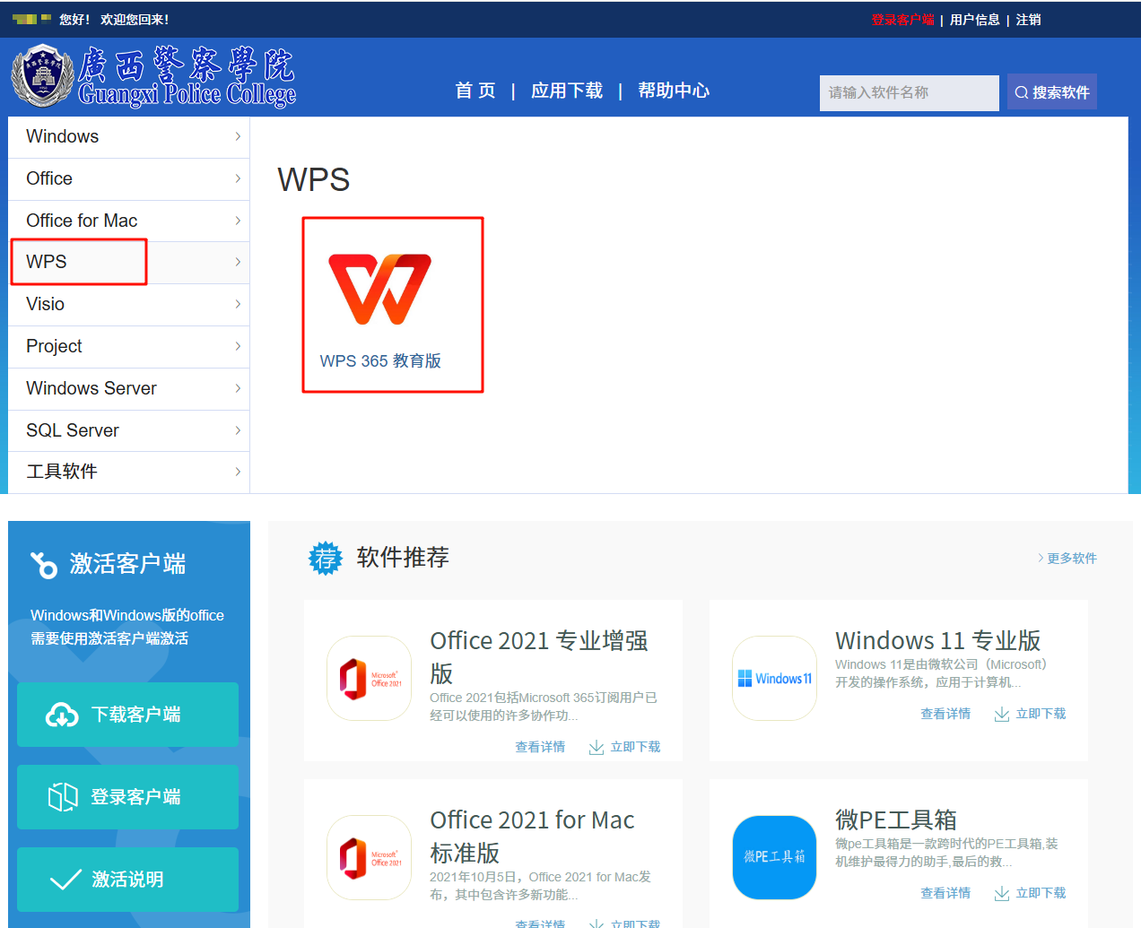 3. 将鼠标放到WPS 365 上然后点击右边的WPS 365图标